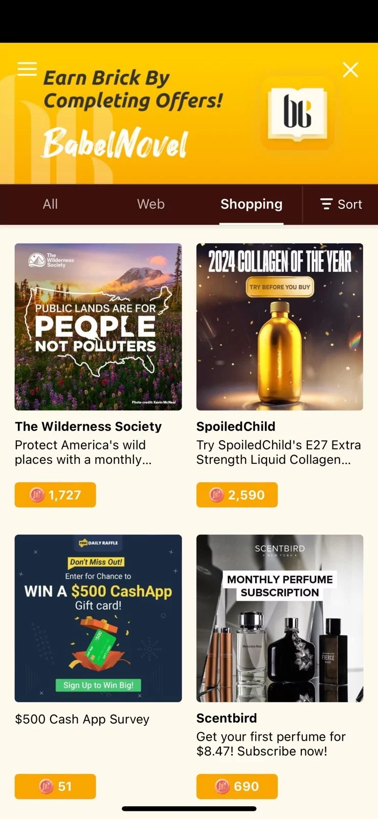 BabelNovel is a platform offering users a library of sexually explicit e-books, with many of them being partially locked behind paywalls. Readers are prompted to purchase tokens from the website and spend them on unlocking full web novels. BabelNovel maintains a partnership with the Wilderness Society wherein users can agree to make monthly donations of at least $20 to the environmental nonprofit group and, in exchange, receive a large number of tokens that can be redeemed for smut novels.