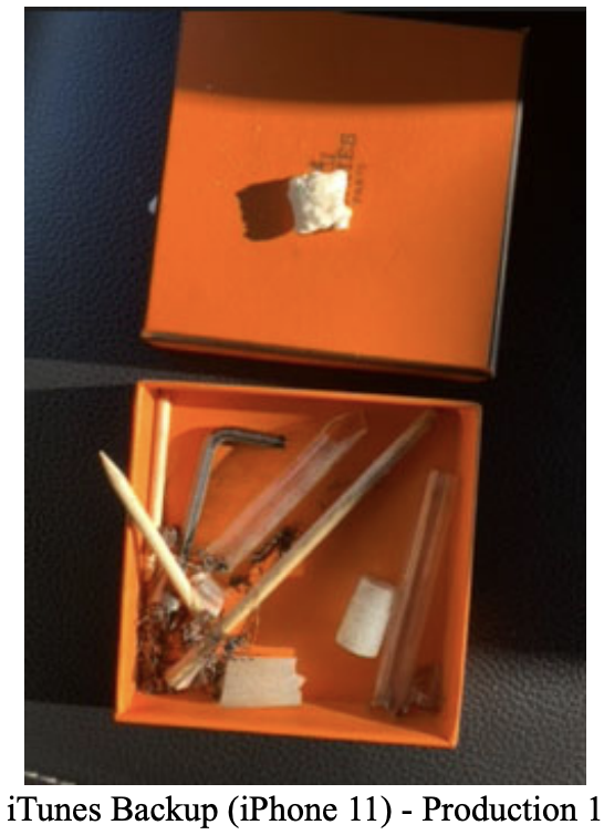 The prosecutors also included photos from 2018 of what they said appeared to be drugs and drug paraphernalia, which they found among his computer data.