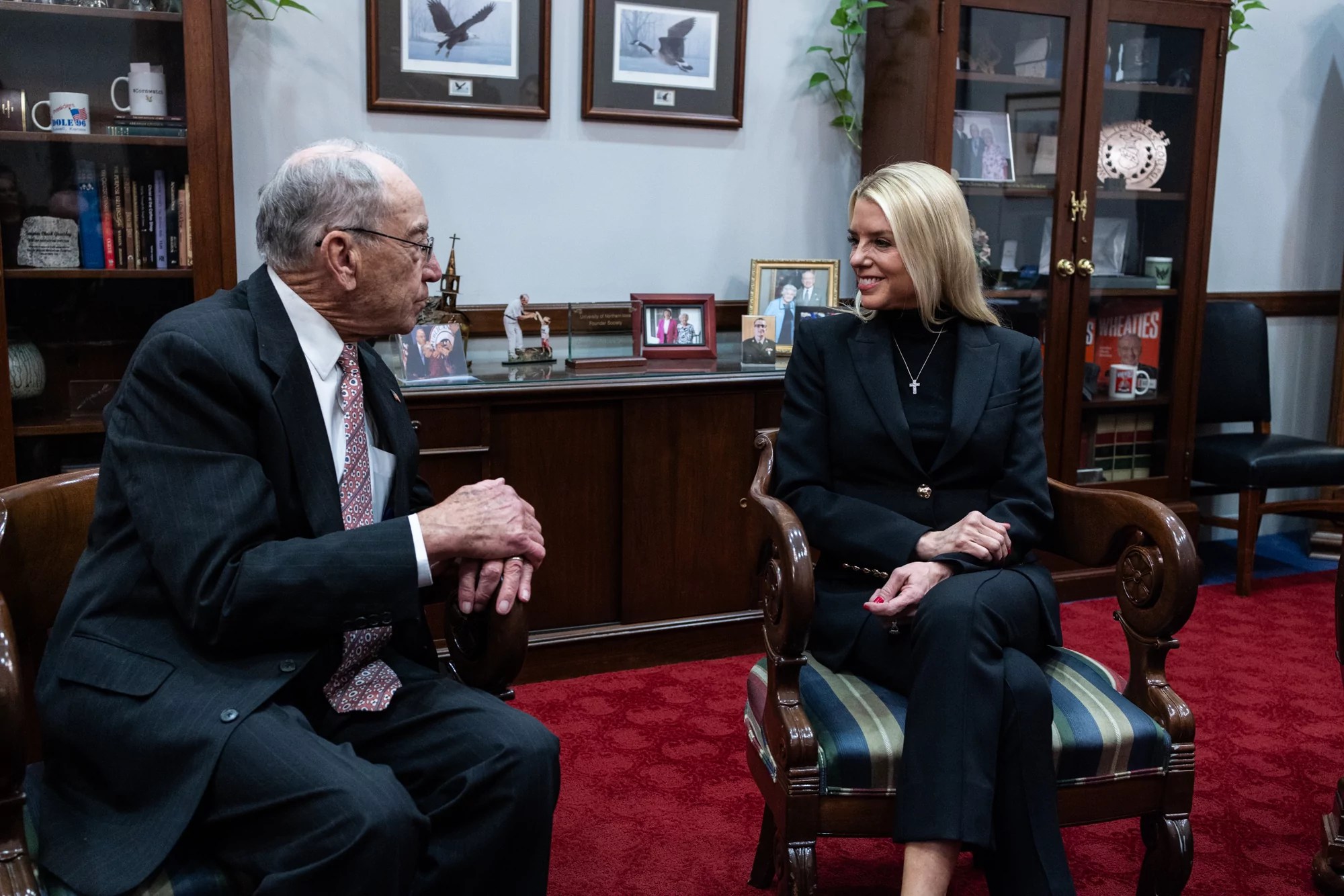 Bondi first met with Sen. Chuck Grassley (R-IA), the next chairman of the Senate Judiciary Committee — the panel responsible for vetting her nomination. She later met with the committee’s current ranking member, Sen. Lindsey Graham (R-SC).