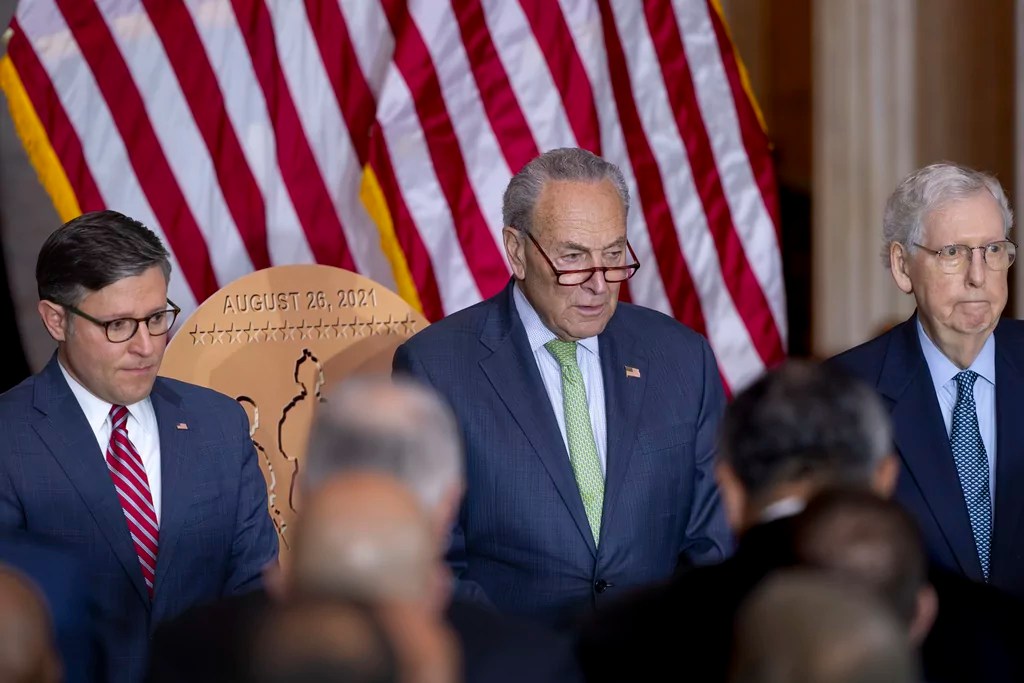 “We need a bipartisan bill where everyone comes together and figures out what to do,” Schumer said. “As you’ve seen the chaos in the House, because Speaker Johnson is trying to do this in a partisan way guided by the far Right, he’s not getting anywhere.”