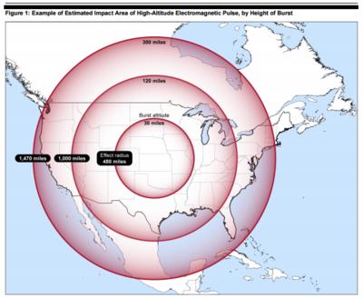 Map shows impact of outage in an EMP attack.