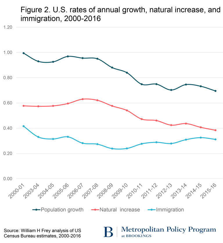 Frey noted that some of the earlier population declines were due to a drop in immigration, but it has recently stabilized at 1 million.