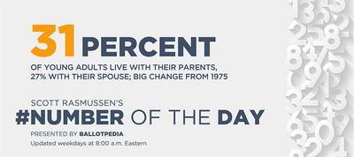 Pollster Scott Rasmussen reveals in his new book that one-third percent of them live with mom and dad. Another 27 percent are married. In 1975, 57 percent of young adults lived with their spouse.