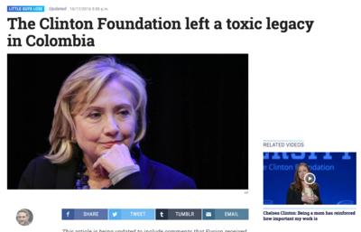 But in an unexpected rebuff, the website backed by pro-Clinton Univision and one that features Donald Trump critic Jorge Ramos as a columnist, refused to back down and kill the Monday story headlined, “The Clinton Foundation left a toxic legacy in Colombia.”