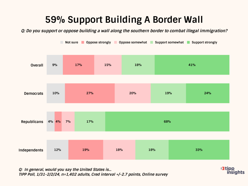 The survey from I&I/TIPP Poll found that nearly 6 in 10 want the border wall completed.