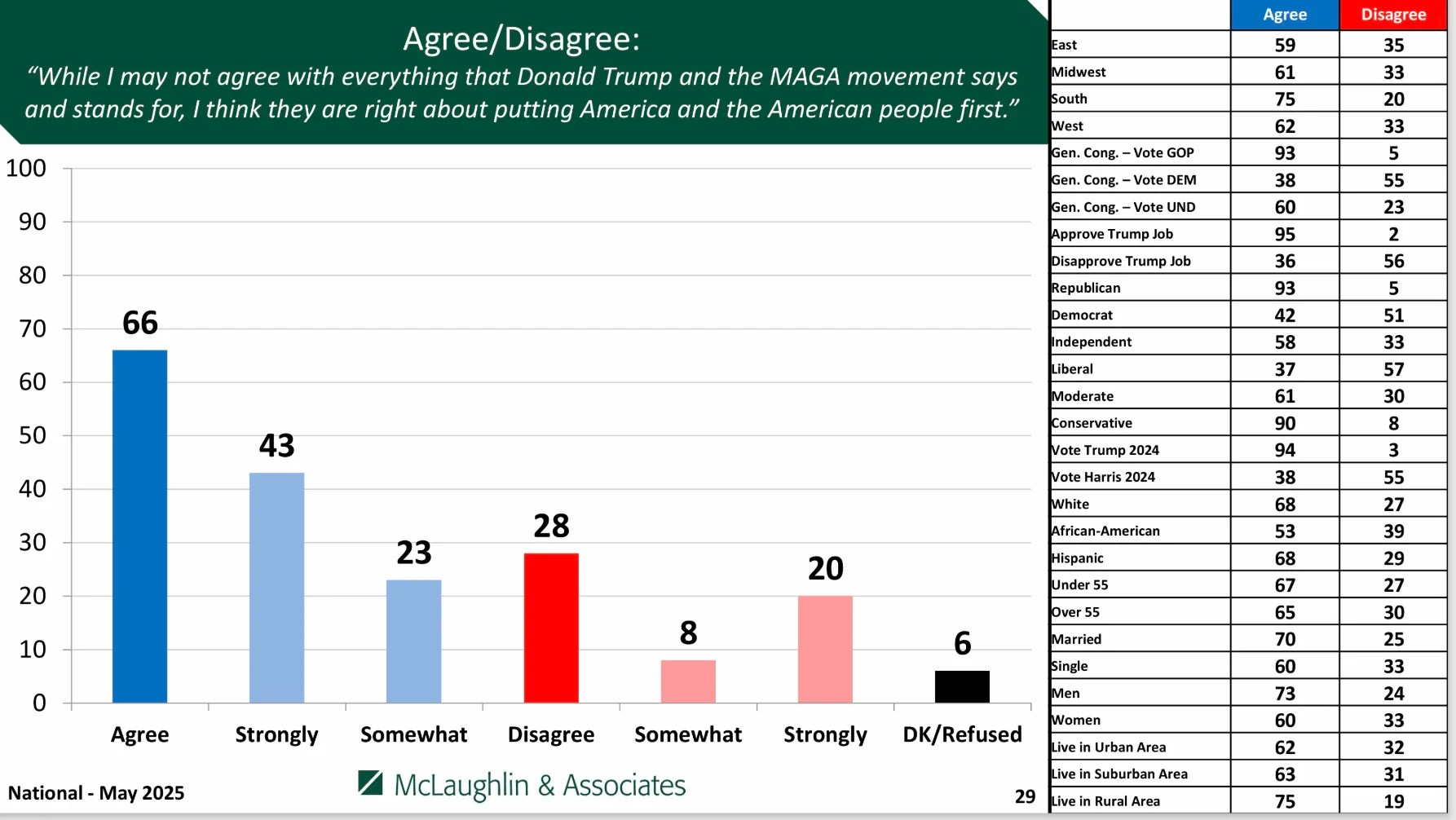 While saying that they don’t agree with everything Trump and his MAGA movement do, two-thirds believe that the president is putting America first as he resets the national agenda.