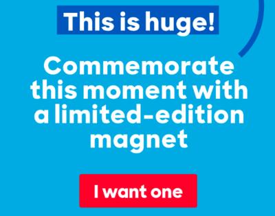 “This huge,” added the message. “Commemorate this moment with a limited-edition magnet.”