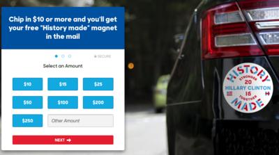 The rest of the message: Donate $10 bucks and get a car magnet.
