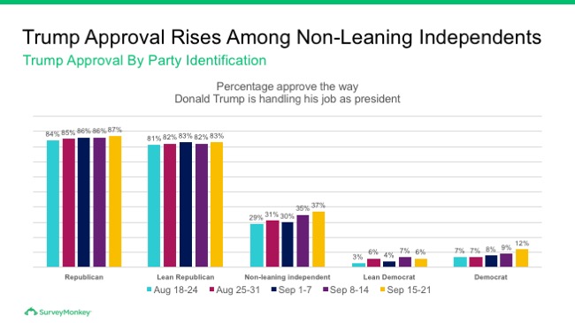 Significantly, the SurveyMonkey poll found a slight shift among Democrats in Trump’s favor.