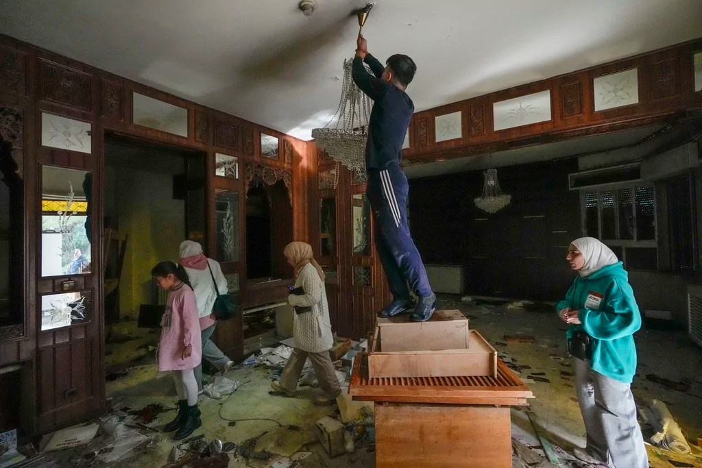 Videos captured citizens robbing the Syrian Central Bank, carrying out bags of cash. Large crowds stormed the abandoned presidential palace, smashing portraits of the Assads and looting valuables.