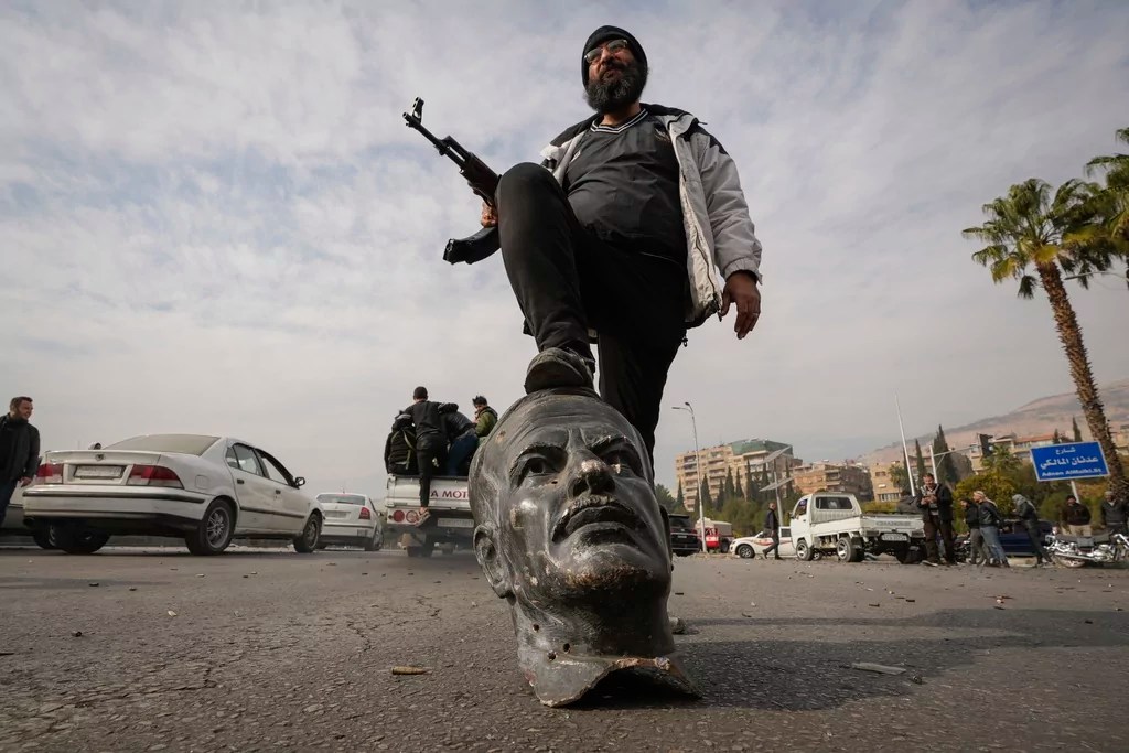 Opposition forces arrived shortly before dawn in Umayyad Square, the city center. After a steady trickle in the early hours, a flood of supporters emerged, celebrating and vandalizing symbols of the Assad regime. Dozens of videos showed Assad posters being defaced, statues toppled, and government buildings raided.