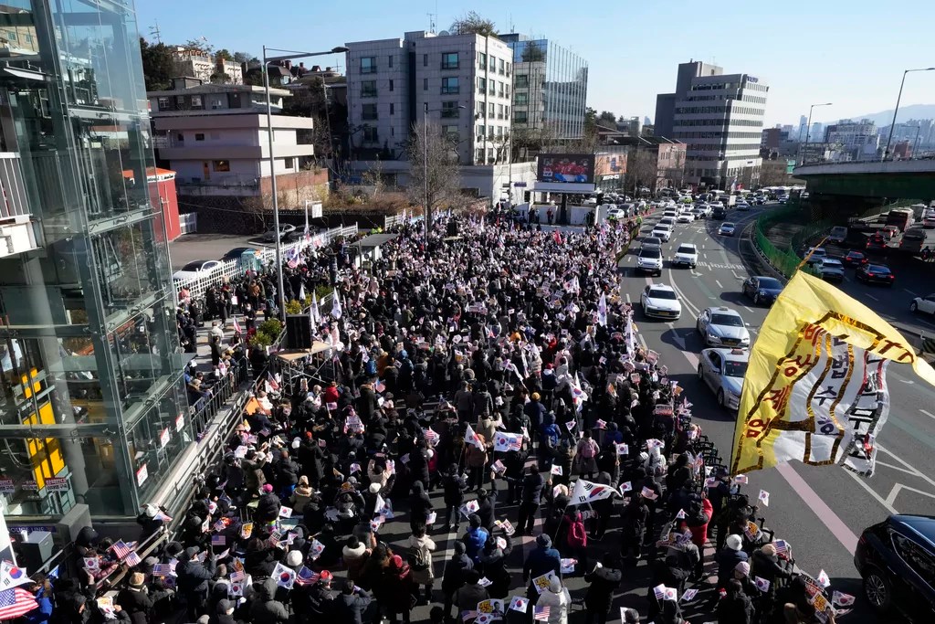 Hundreds of supporters gathered outside the president’s residence this week in a show of solidarity, chanting slogans such as “Nullify the impeachment!” and “We will protect President Yoon Suk Yeol!”