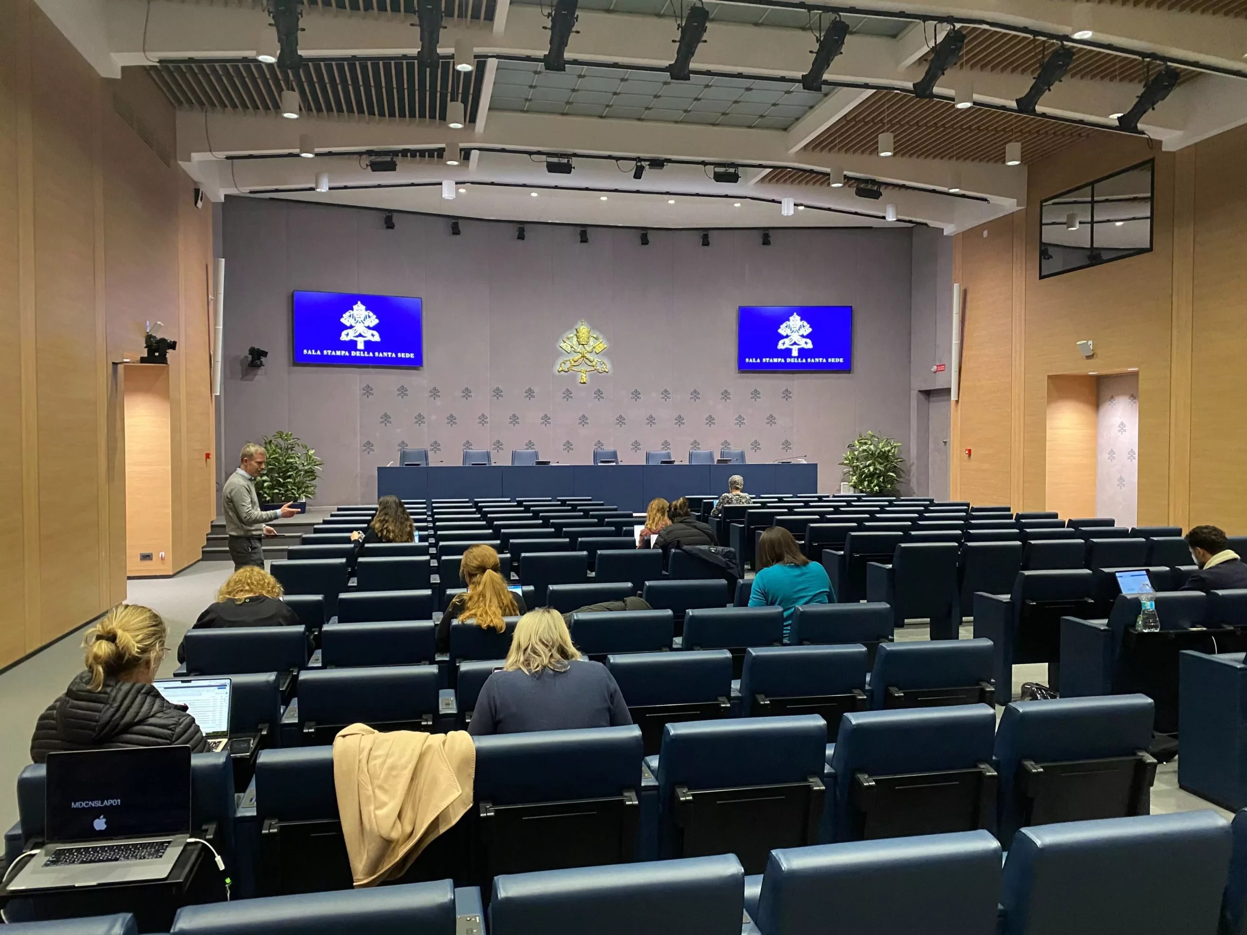 A spokesperson for the press office, known as the Sala Stampa, arrived before noon to deliver brief remarks and field questions.