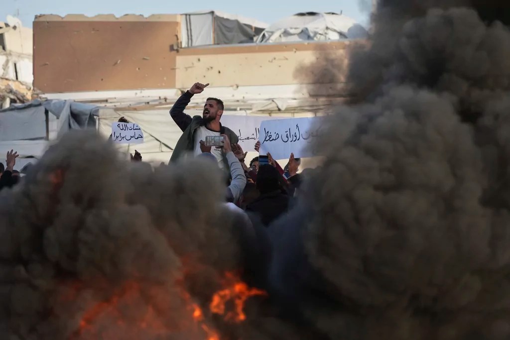 “The people here are calling to free the ‘prisoners’ so we can remain alive,” one protester says in a video posted to social media. “Hamas is demanding our people to remain steadfast. But how can we remain steadfast when we’re dying? We’re sending a message to the entire world: We reject the rule of Hamas.”