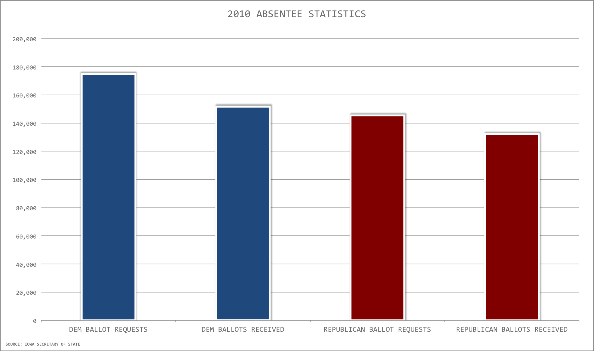 As of Thursday, registered Republicans have cast 105,347 ballots to 104,984 for Democrats, according to the Iowa Secretary of State. (The numbers are compiled daily at the Ace of Spades Headquarters Decision Desk.)