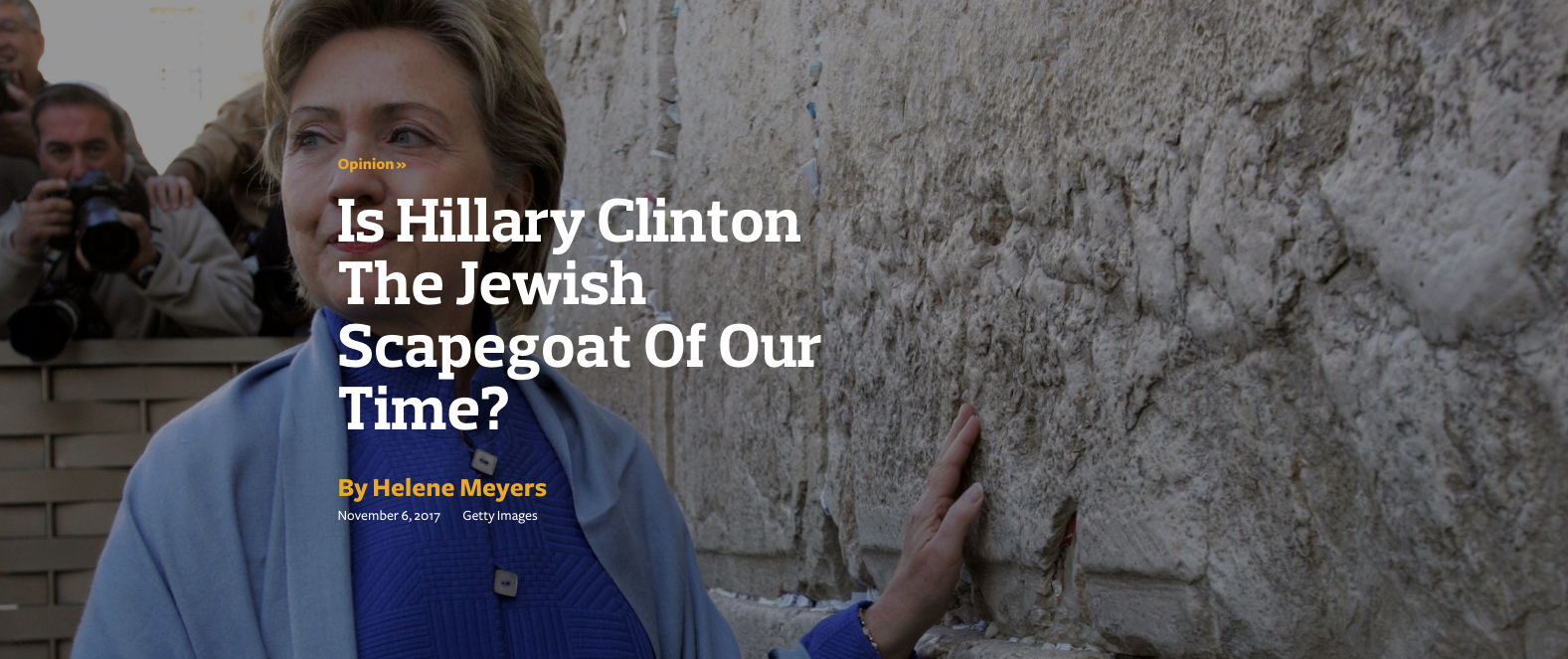 The title alone invites a well-deserved groan from the reader: “Is Hillary Clinton The Jewish Scapegoat Of Our Time?”