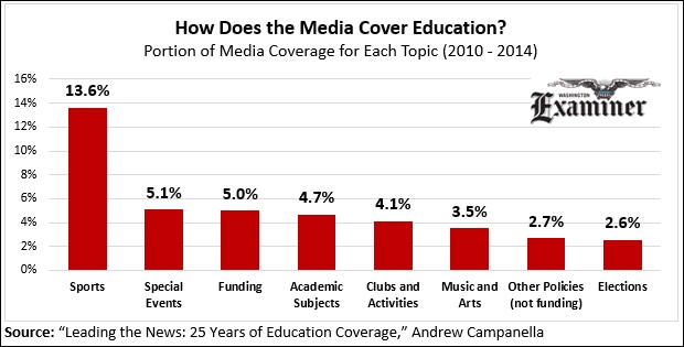 School sports receive the most education-related media coverage, according to a new report. Aside from education funding, there are four times as many stories about sports than education policies in local, regional and state media outlets.