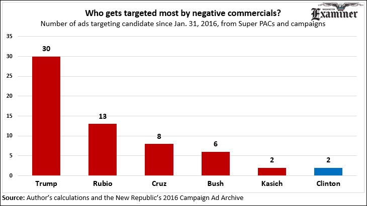 As the 2016 campaigns continue, candidates are spending more on advertising that attacks the other candidates. But who’s getting targeted most by the negative ads?