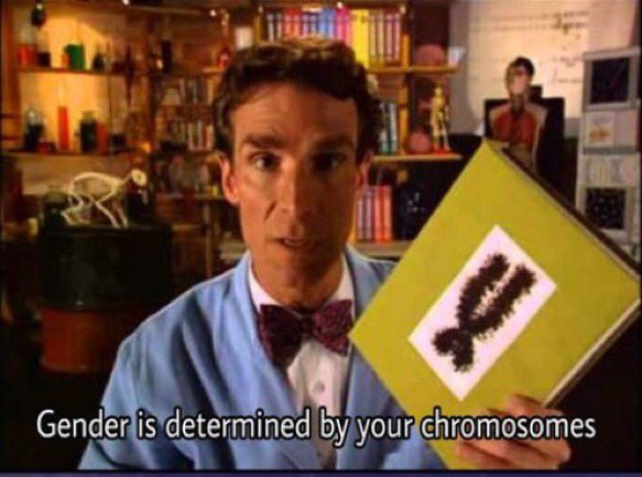 Nye never said, “Gender is determined by your chromosomes” in that particular episode of his old show. The text in the now-widely shared image comes via some random Internet user.