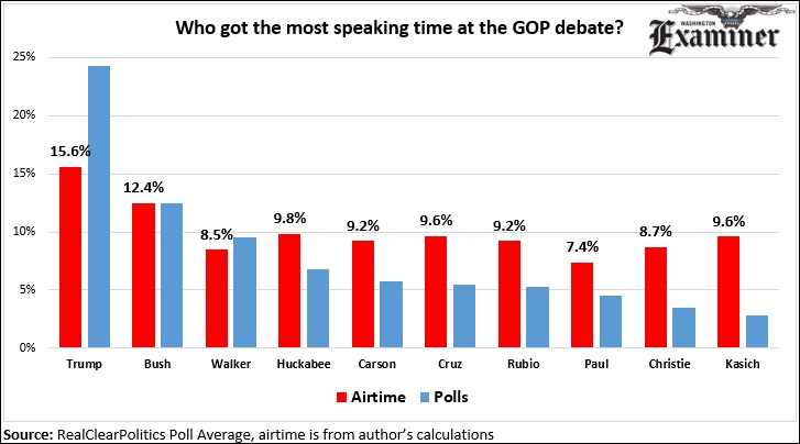 Only Trump and Jeb Bush received more than their fair share of speaking time, if you believe each candidate should have had equal time.