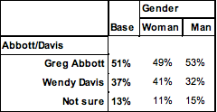 Abbott continues to hold a double-digit lead over Davis (51 percent to 37 percent) with seven months left until the election.