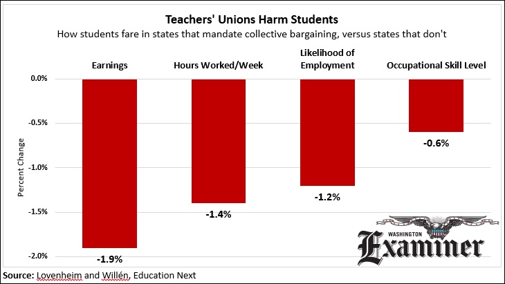 Students end up earning less if they are educated in states where school districts are forced to collectively bargain with a teachers’ union, according to a new study published Tuesday in Education Next. They are also less likely to find a job.