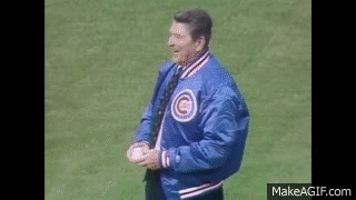 In 1988, President Reagan made a surprise appearance at Wrigley Field to throw out two first pitches, with commentators joking Reagan didn’t think the first pitch was good enough. Very early in his career, Reagan was a radio announcer for the Chicago Cubs.