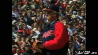 President Clinton threw the first pitch for the first-ever game at Jacobs Field, home of the Cleveland Indians, now called Progressive Field.
