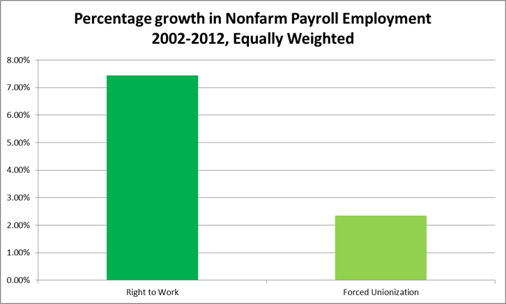 Both states have seen healthy job growth above the national average (even with the bankruptcy of Detroit) since workplace freedom was extended to workers.