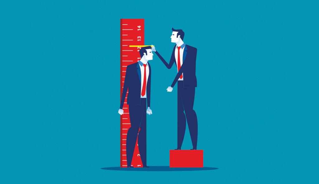 My friend is in fact a short person, reaching barely 5 feet, 7 inches when fully dressed. I am 5 feet, 9 inches, which is, in fact, the statistical average for a man of my age and ancestry, and I couldn’t let myself be lumped in with the undersized leprechaun. I needed to draw a line, even if it hurt his feelings.