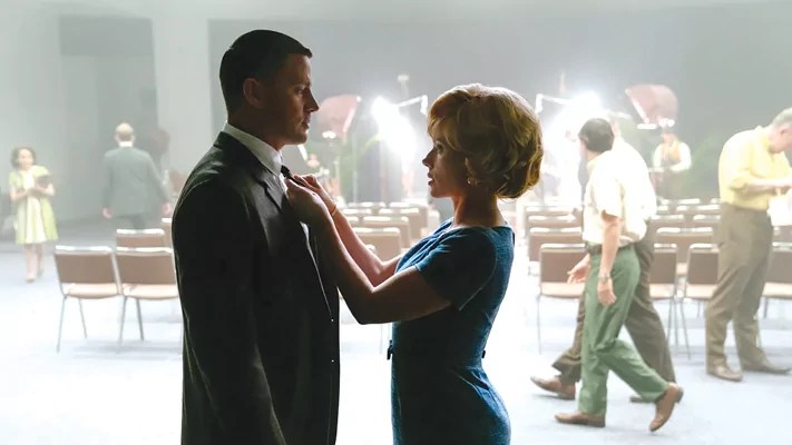 Even so, Johansson is agreeably take-charge when she descends on Cape Canaveral: One of the better scenes features Kelly gaining access to a restricted area simply by snatching a tour guide’s badge and marching through the door. The gung-ho Johansson, sporting a fashionable bob and a wardrobe consisting of capri pants and pencil skirts, bounces nicely off of the strong, stoic Tatum, and the two are teased as a potential couple early and often. Berlanti has a sure eye for period detail, and the diners, cars, clothes, media, and technology of the era all look authentic. As a facsimile of a Rock and Doris comedy, Fly Me to the Moon is at least as good as Peyton Reed’s Down with Love, an apparently long-forgotten charmer from 2003 with Ewan McGregor and Renee Zellweger.