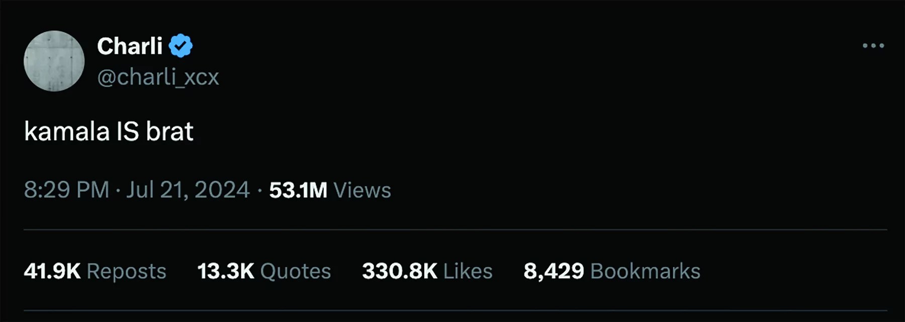 “Kamala IS brat,” pop star Charli XCX posted mere hours after Biden’s campaign resignation, baffling boomers, Gen Xers, and most millennials all at once. Discussion of this inscrutable declaration made it all the way to CNN.