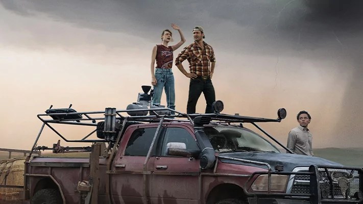 In the universe of Twisters, there are three powerful forces: God, capitalism, and pickup trucks. The main plot is about our heroes using the third one to defeat the first two. But first, our team of heroes must assemble. As Javi and Kate reunite, Javi has set up a tornado-tracking radar data collection company, Storm Par, and he needs Kate’s preternatural weather instincts to help him predict tornadoes and get its radars in the proper place. But a lot has changed in five years. Now, in tornado season, when the storms start blowing, YouTube-famous storm chasers descend on the region to stream their exploits. Enter the most famous storm chaser, Tyler (Glen Powell), who styles himself a “tornado wrangler.” As tornado chasers go, Tyler’s team are fun-loving good guys, with modified Dodge trucks equipped with built-in anchors (you know, to secure them to the ground when they drive straight into tornadoes) and dreadlocks, juxtaposed by Storm Par, the doctorate-having, pen-pushing sticks in the mud.