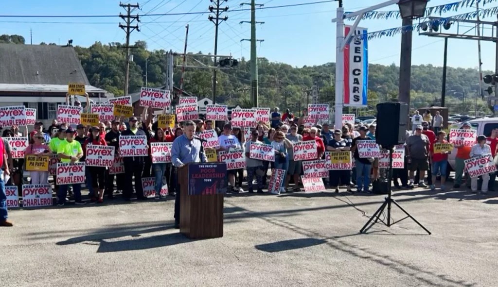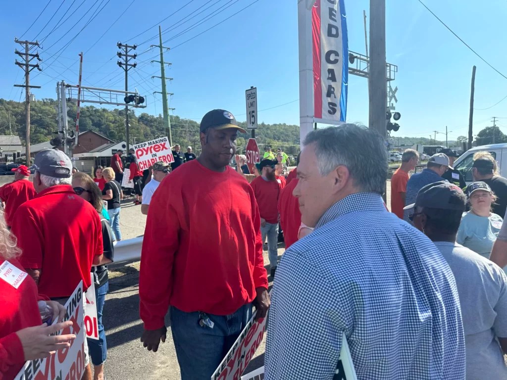 “Never thought I’d see the day when this plant would be closing, but here we all are,” he said, then turned to all of the union men and women behind him holding “Keep Making Pyrex in Charleroi” signs as his voice, too, cracked.
