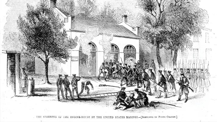 Federal troops were also used to suppress domestic violence between pro- and anti-slavery factions in “Bloody Kansas.” Soldiers and Marines participated in the capture of John Brown at Harpers Ferry in 1859.