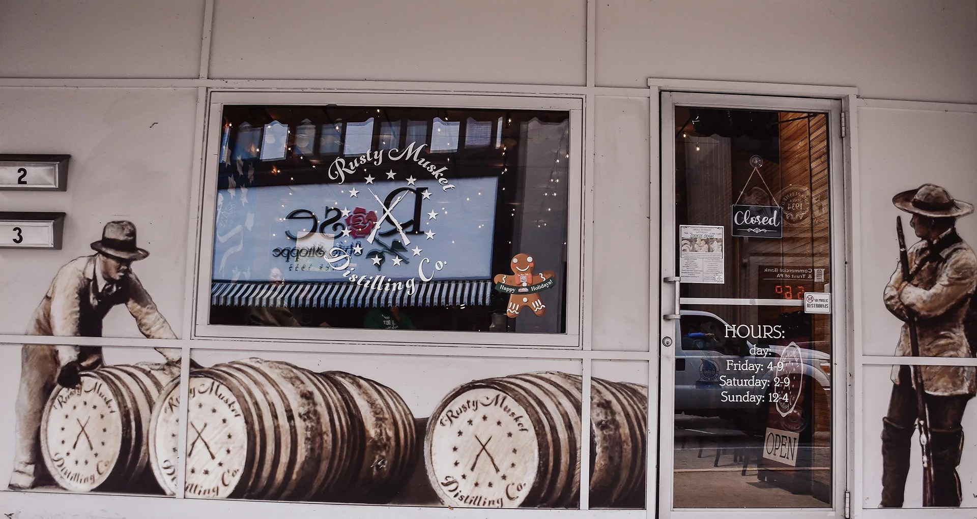 Hanging on the wall to the left of the bar is the Whiskey Rebellion flag. Kris Brewer, a Marine veteran, said the musket half of the distillery’s name came from the roots of the Whiskey Rebellion in the area.
