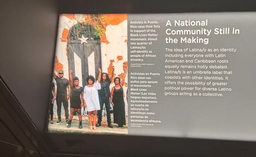 “The idea of Latina/o as an identity including everyone with Latin American and Caribbean roots remains hotly debated. Latina/o is an umbrella label that coexists with other identities. It offers the possibility of greater political power for diverse Latino groups acting as a collective.” That quote is accompanied by a group of young activists from Puerto Rico raising their fists in support of Black Lives Matter.