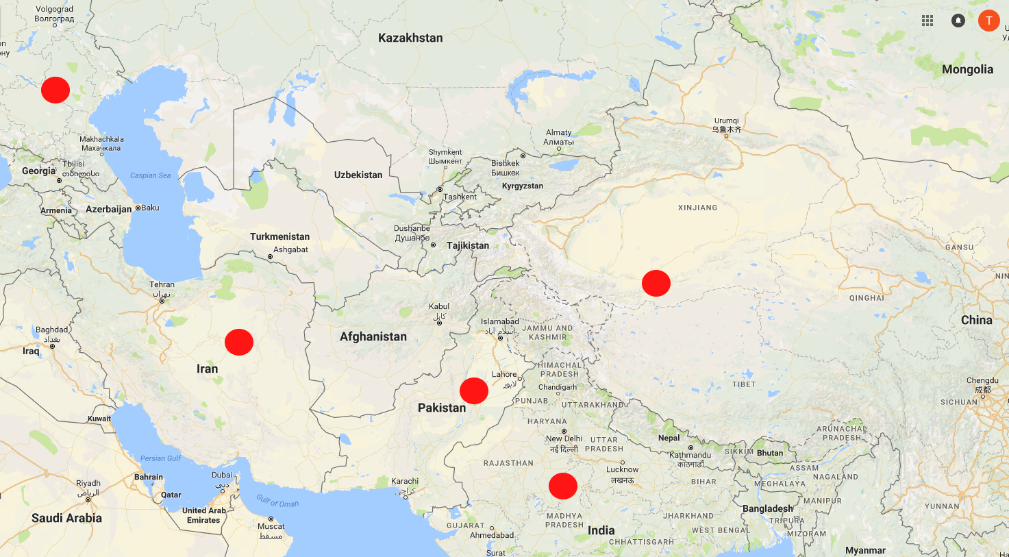 As the red dots representing nations