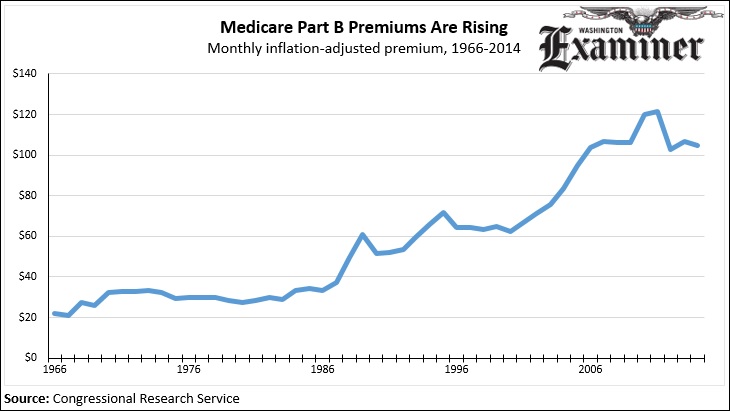 Monthly premiums for Medicare Part B are $104.90, more than double the $50 premiums of 2001. Back in 1966, the monthly premium was just $21.87 after adjusting for inflation.