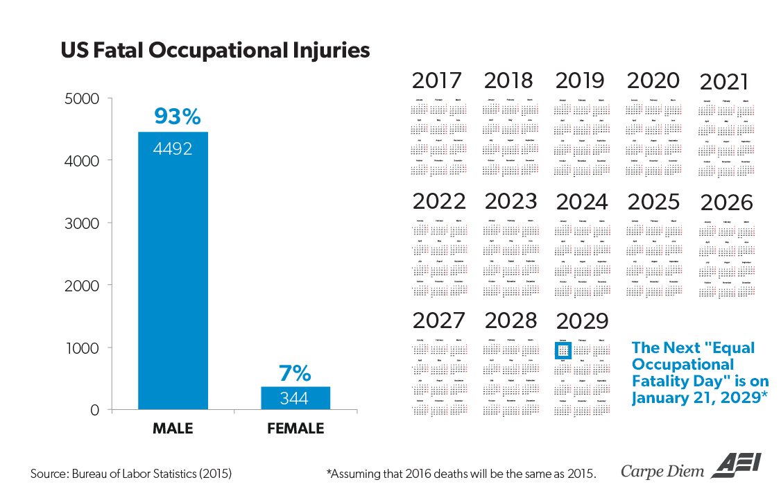 Finally, here’s a question I pose for the NCPE every year: Would achieving the goal of greater pay equity really be worth the loss of life for thousands of additional women each year who would die in work-related accidents? Perhaps slightly higher pay for higher-risk, more dangerous jobs is an option most women don’t find very attractive, and the NCPE should stop advocating for women to choose such a deadly option.