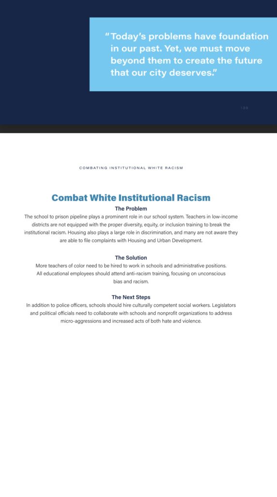 “The school to prison pipeline plays a prominent role in our school system,” it said. “Teachers in low-income districts are not equipped with the proper diversity, equity, or inclusion training to break the institutional racism. Housing also plays a large role in discrimination, and many are not aware they are unable to file complaints with Housing and Urban Development.”