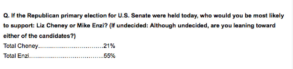 The poll was taken after Cheney announced her primary challenge to Enzi, and once he signaled that he would run for a fourth term.