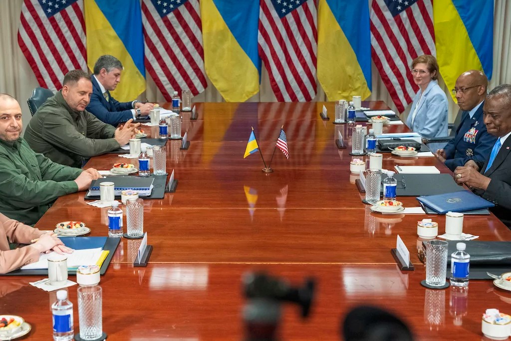 “I am proud that the United States will soon announce more than $2.3 billion in new security assistance for Ukraine,” Austin said. “This package, under presidential drawdown authority, will provide more air defense interceptors, anti-tank weapons, and other critical weapons from U.S. inventories. It will also enable the United States to procure more Patriot and [National Advanced Surface-to-Air Missile System] air defense interceptors, which will be provided on an accelerated timeline.”