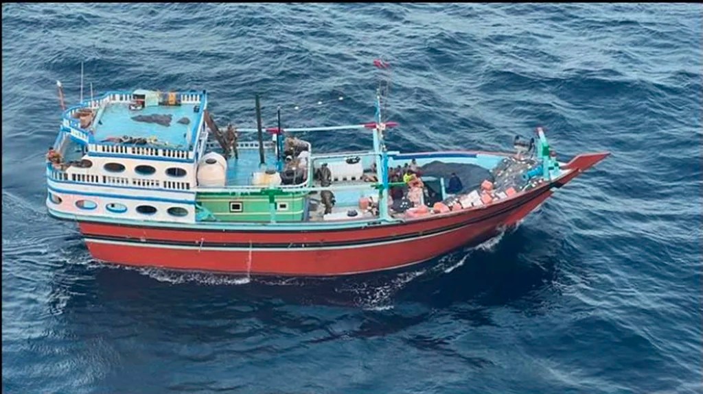 A search of the dhow, the type of vessel, revealed Iranian-made advanced conventional weaponry, including ballistic missile warheads, anti-ship cruise missile components, and propulsion and guidance systems. U.S. officials said the seized weapons were of the same type used by Houthi forces in attacks against U.S. military and commercial ships following Hamas’s Oct. 7, 2023, attack on Israel.