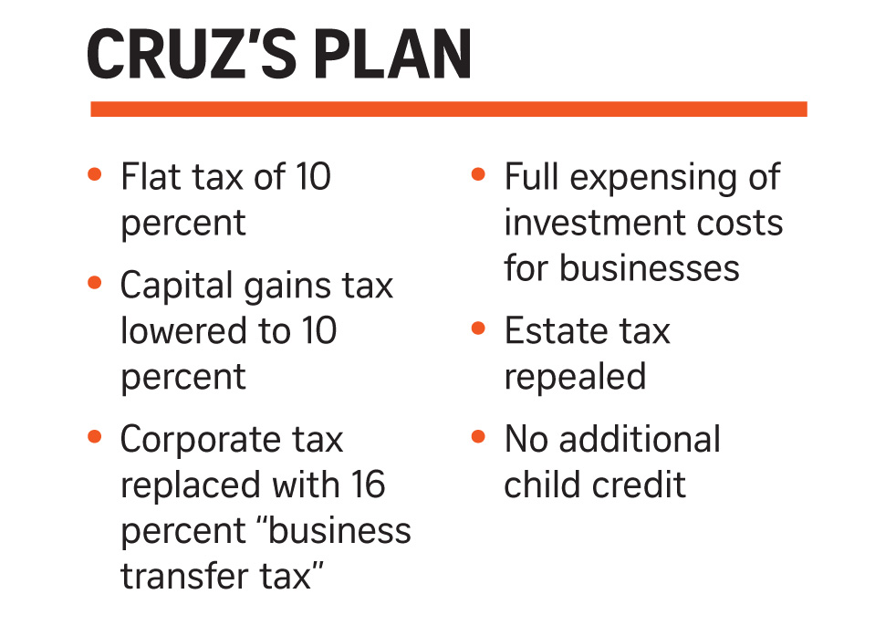 Cruz outbids them all with a 10 percent flat rate. The flat tax, long the prize for movement conservatives, applies the same rate to all income levels above a certain minimum threshold.