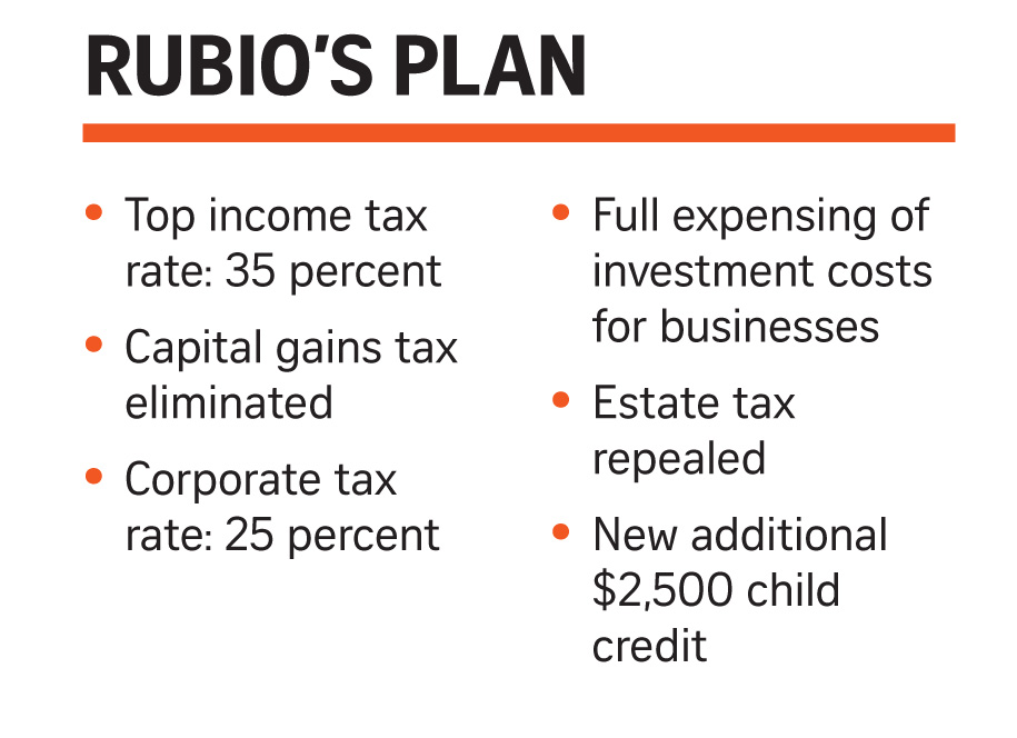 Rubio’s tax goals are relatively modest. He would return the top rate to 35 percent rate, as it was after George W. Bush’s cuts.