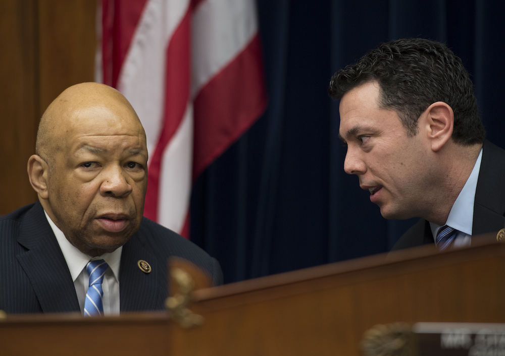 Committee Chairman Rep. Jason Chaffetz, R-Utah, chats with Ranking Member Rep. Elijah Cummings, D-Md., on Feb. 3 before the hearing into the Flint water crisis begins. (AP Photo)