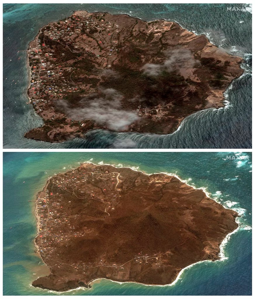 The Grenadine island Carriacou was one of the first places hit by the hurricane, destroying much of the island’s infrastructure. Sattelite imagery showed the extent of the destruction.
