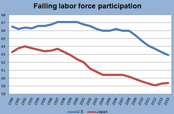 Japan and the U.S. have one more parallel that may prove to be key: A shrinking labor force.