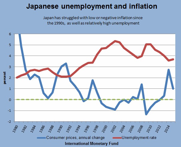 As the economy stagnated throughout the 1990s, the Bank of Japan cut interest rates to zero, promised markets low rates for longer and started quantitative easing. Yet inflation never materialized, although expectations remained anchored and unemployment never rose above 5.3 percent. That episode has some economists worried the same fate could befall the U.S., with growth and inflation never picking up even as the unemployment rate falls to pre-recession levels.